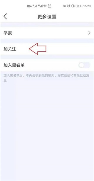 在展开菜单中选择“加关注”功能。