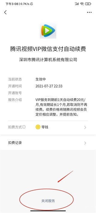 从列表中找到腾讯视频自动续费项目。