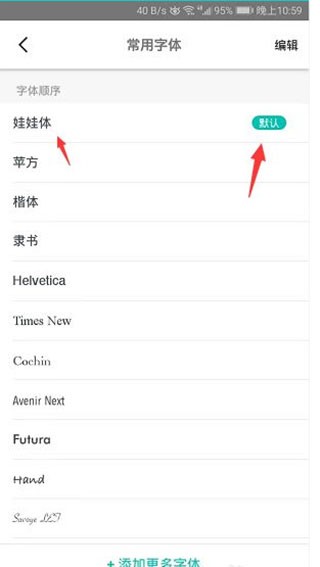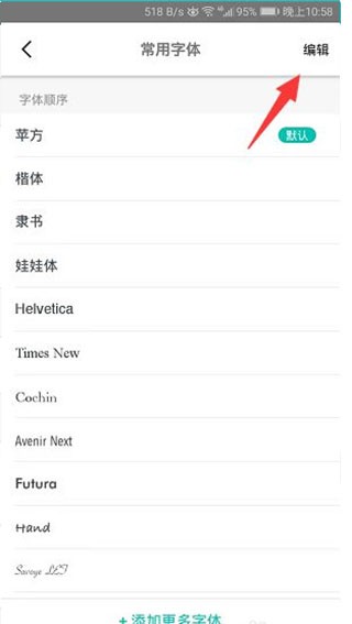 向下滑动至「常用字体」模块,点击进入字体管理界面。