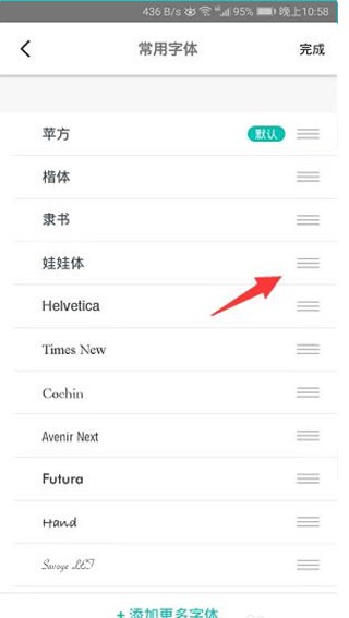 长按心仪字体右侧的三横标识,将其拖拽至列表首位。
