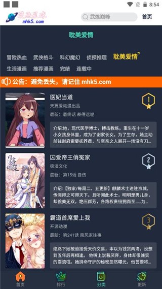 4、点击分类按钮,根据个人喜好选择漫画类型