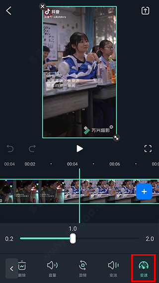 变速与倒播功能藏于“变速”菜单中,拖动进度条即可实时查看加速或减速效果,定格帧则可用于突出某个动作细节或制造戏剧性停顿。