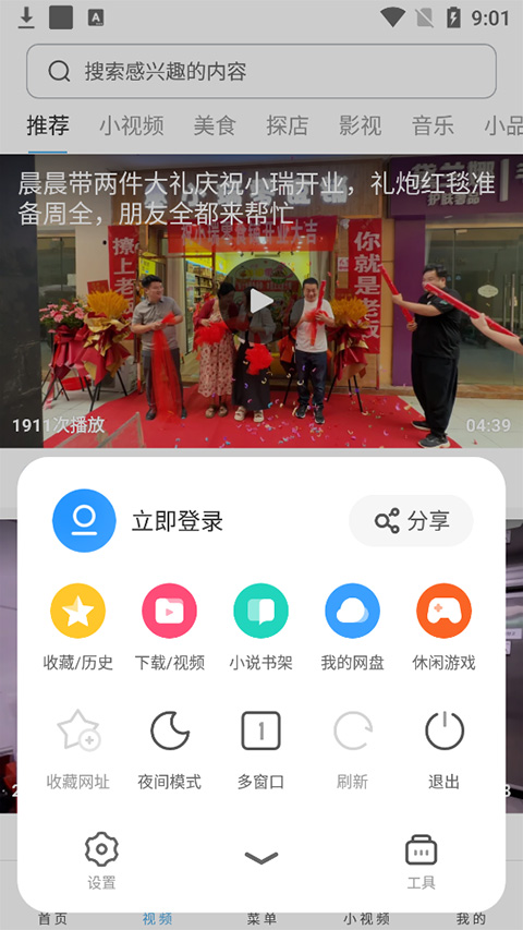 通过菜单键可快速进入登录、设置、下载管理等核心功能页面,方便用户进行个性化配置。