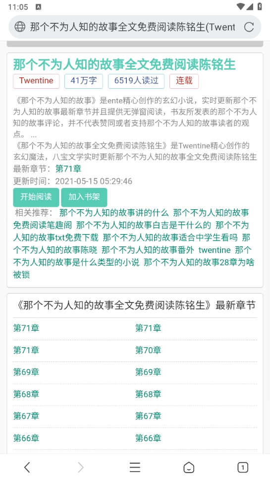 点击感兴趣的网站,即可查看小说简介与章节目录。