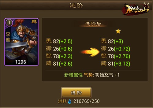 所有武将均可通过消耗武魂进阶,大幅提升属性。正所谓:橙将虽强,武魂更贵;欲成霸业,勤刷为先!