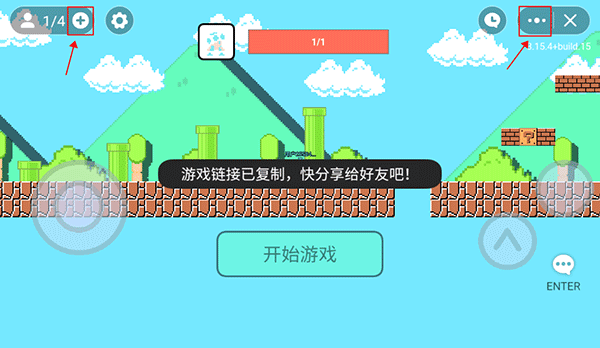 通过点击界面左侧的“+”号或右侧的“…”选项,可复制游戏链接并分享给好友,快速邀请对方加入联机对战。