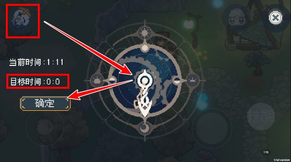 行至一处废墟前暂停脚步,点击屏幕左上角的时间调节图标,将游戏时间设定为午夜0:00。