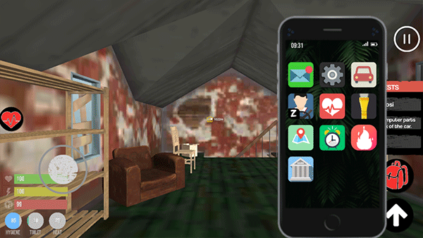 通过点击场景中的物品触发不同操作,如使用电脑进行购物、查看信息或剪辑视频。