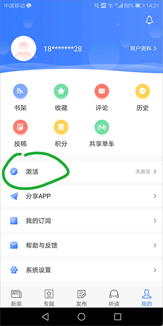 1. 打开并登录中国建设报App,进入“我的”页面,点击“激活”选项。
