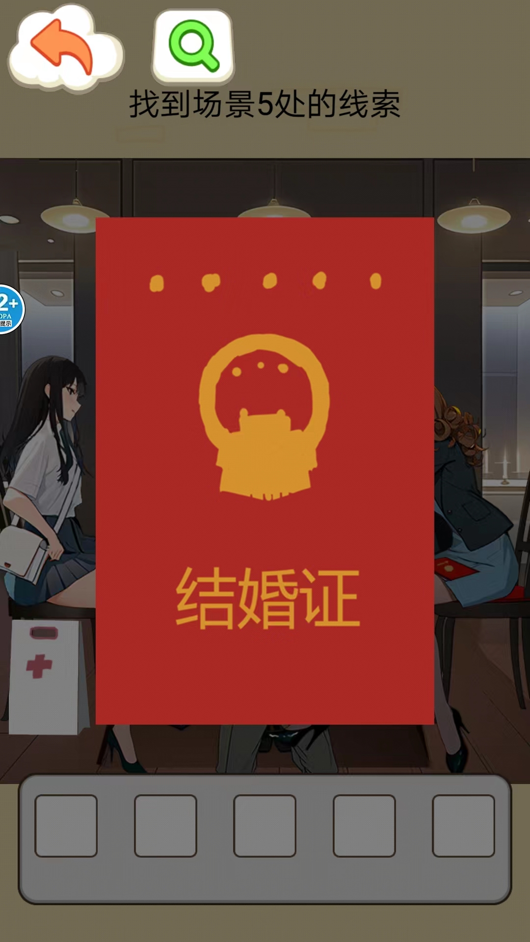 5、点击女主腿上的结婚证等关键物品,触发剧情对话,推进故事。