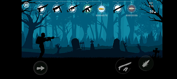 3、遭遇僵尸逼近时,只需点击开火按钮即可射击,操作简单但考验时机与准度;