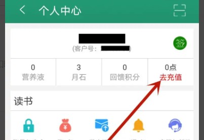 返回【个人中心】,点击【去充值】选项。