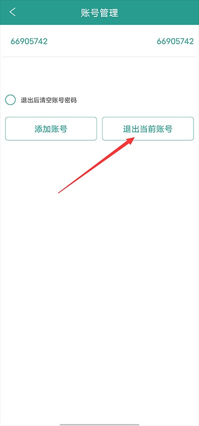 进入账号管理界面后,点击图示位置的“退出当前账号”选项。