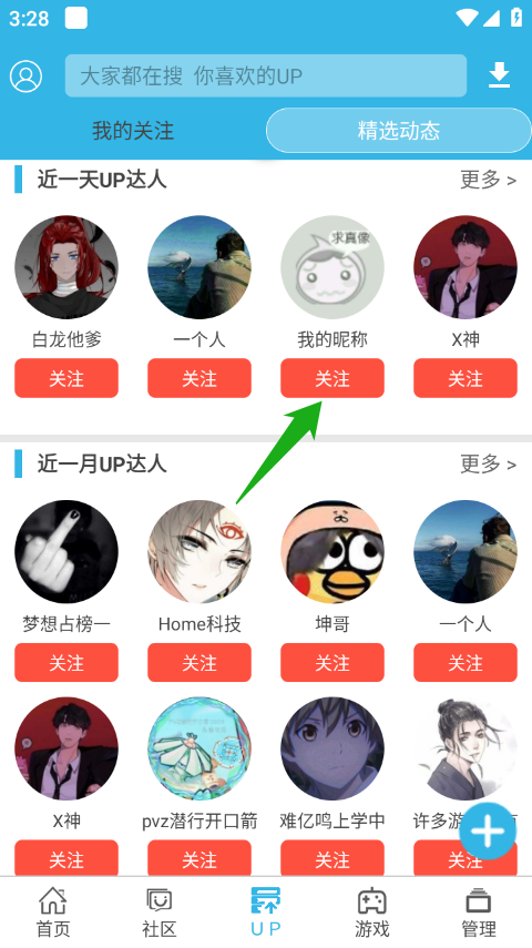在应用内查找UP主十分便捷。进入软件后,可直接前往【UP】页面,在搜索栏中输入目标UP主的名称进行查找。
