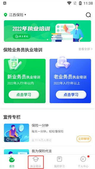 进入APP后,点击职业培训板块。