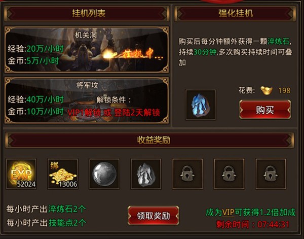 挂机福利支持离线自动产出资源,上线一键领取,轻松不肝。