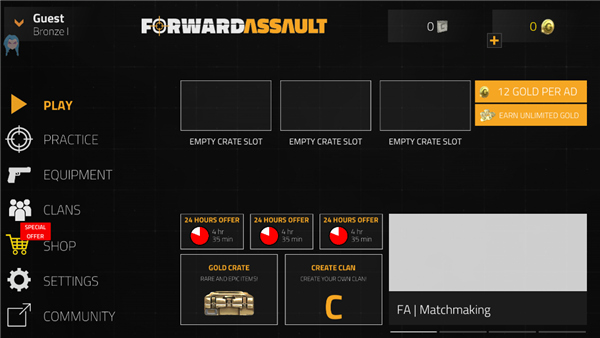 熟悉CS或CF操作逻辑的玩家会迅速上手,本作延续了经典FPS的操作习惯。支持实时联机功能,既可创建房间邀请好友组队开黑,也能快速匹配进入对局。排位模式随进度逐步解锁,为追求竞技性的玩家提供舞台。若想独自练习技术,人机对战模式随时开放,不影响正常游戏进程。多样化的地图设计带来丰富战术选择,每一次交火都充满新鲜感。