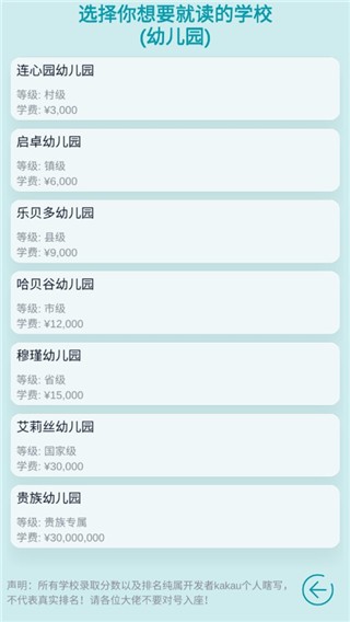 随后进入教育阶段,玩家需为角色挑选合适的学校,奠定未来发展基础。