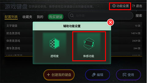 体感功能是达龙云电脑最新版本推出的增强体验特性,帮助玩家在游戏中获得更具沉浸感的操作反馈。开启路径为:悬浮球 > 虚拟键盘 > 右上角【功能设置】>【体感功能】。