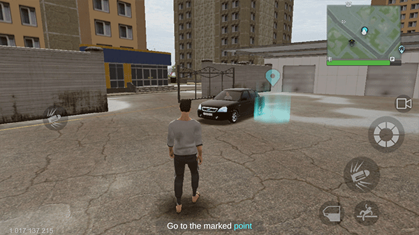 右上角的小地图会实时显示当前位置与目标地点,引导玩家驾驶车辆前往指定区域。