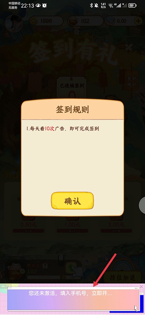 3、然后我们点击最下方的广告弹窗,并观看视频来完成签到任务