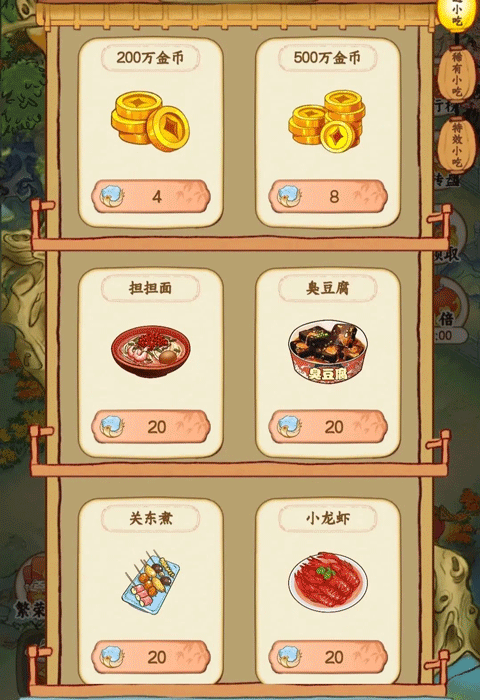 金币可以用来升级摊位,级别越高产生的金币也就越多。
