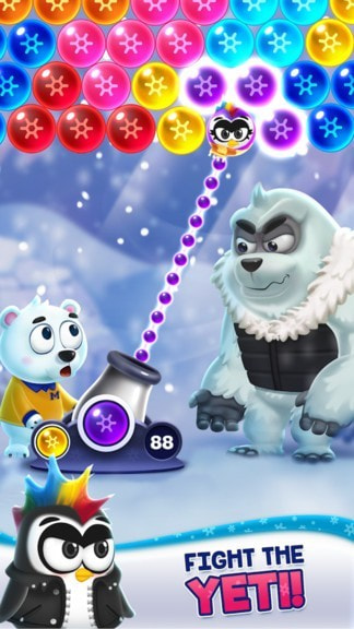踏上冰雪覆盖的奇幻旅程,探索冰冻之花山谷、雪湖等神秘区域;通过匹配三个或以上同色泡泡实现消除;从雪人怪物和嚎叫大狼手中解救被困的小企鹅;还可选择哈士奇、驯鹿等六位风格迥异的角色展开冒险,增添更多个性化体验。