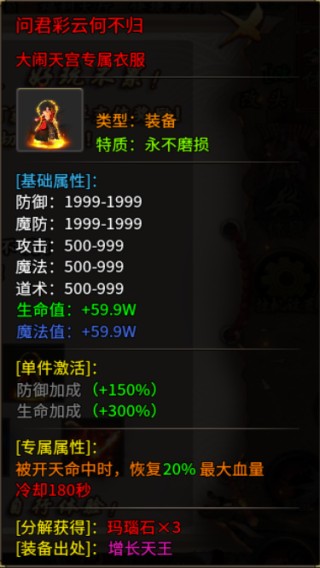 问君彩云何不归为大闹天宫专属服装,仙气缭绕,独具神韵。