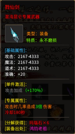 戮仙剑为混沌昆仑职业专属武器,锋芒毕露,威震四方。