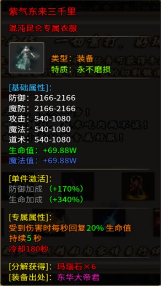 紫色东来三千里是混沌昆仑专属服饰,飘逸华贵,尽显强者风范。