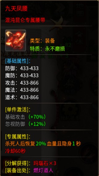 九天凤腰作为混沌昆仑专属腰带,凤舞九天,全面提升战斗属性。