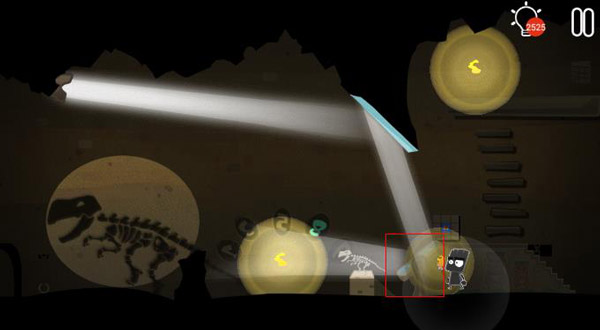 第十五步:调整下图所示位置处红框的镜片,在墙上获得一个恐龙的遗骸图片。