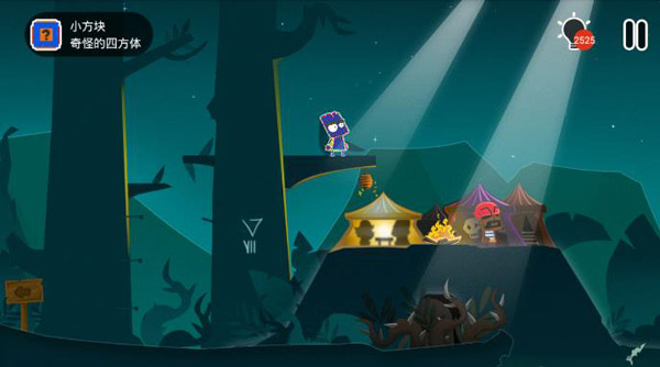 第二步:接着跳上另一边的树上,并往里走获得一个小方块!