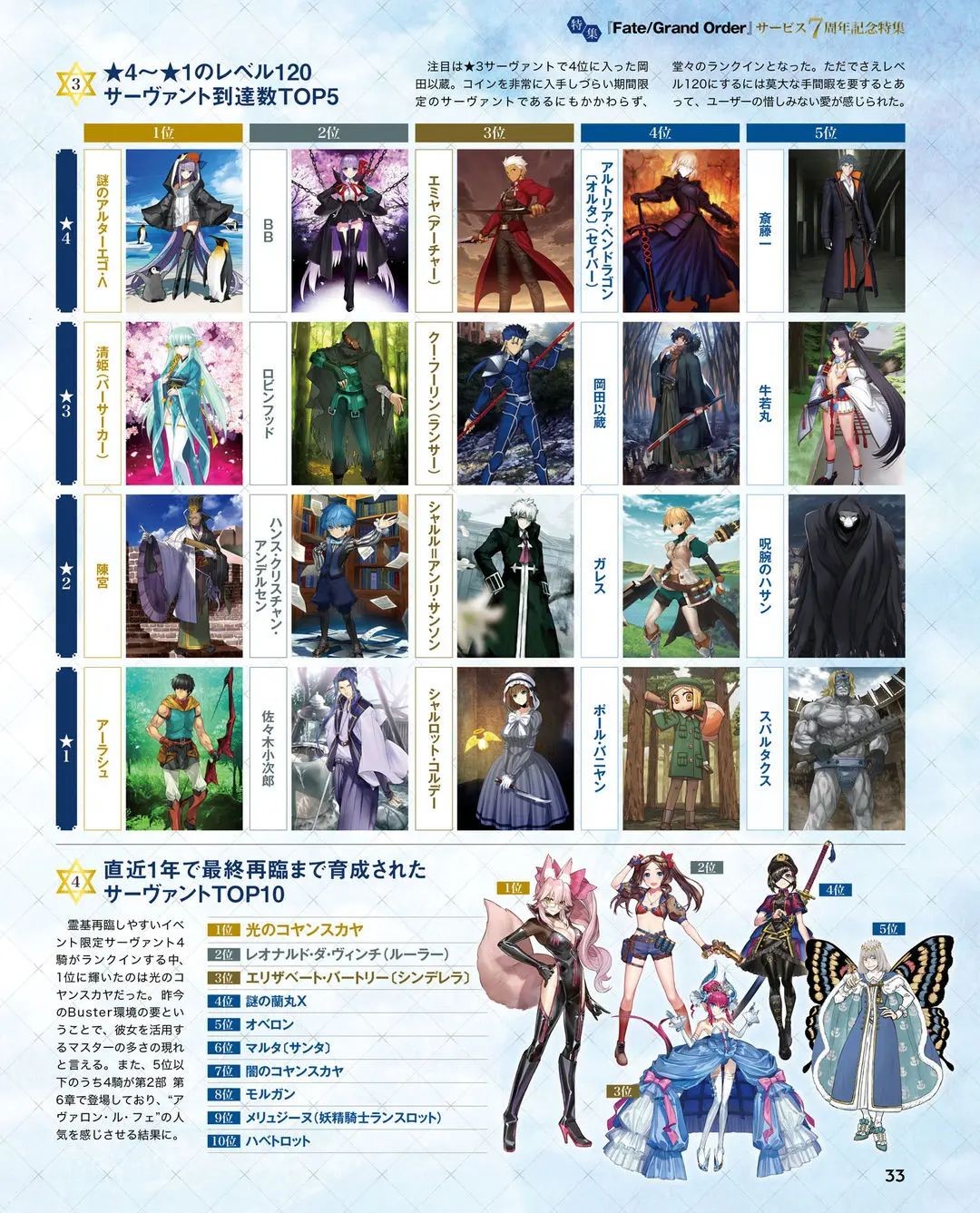 120级五星从者人气排行榜。