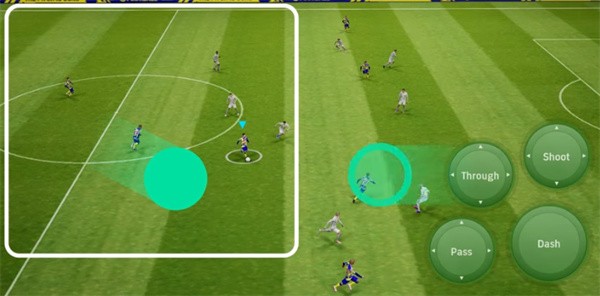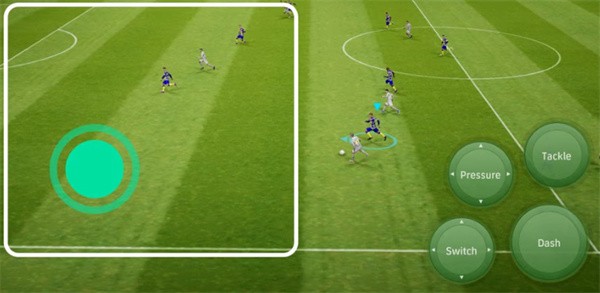 传球后,在画面左侧先向己方球门方向回拉,再朝对方球门滑动。