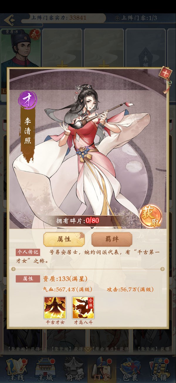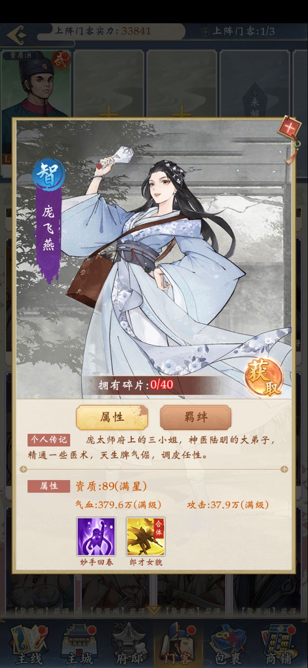 门客之间存在复杂的羁绊系统,合理搭配可大幅提升战力。