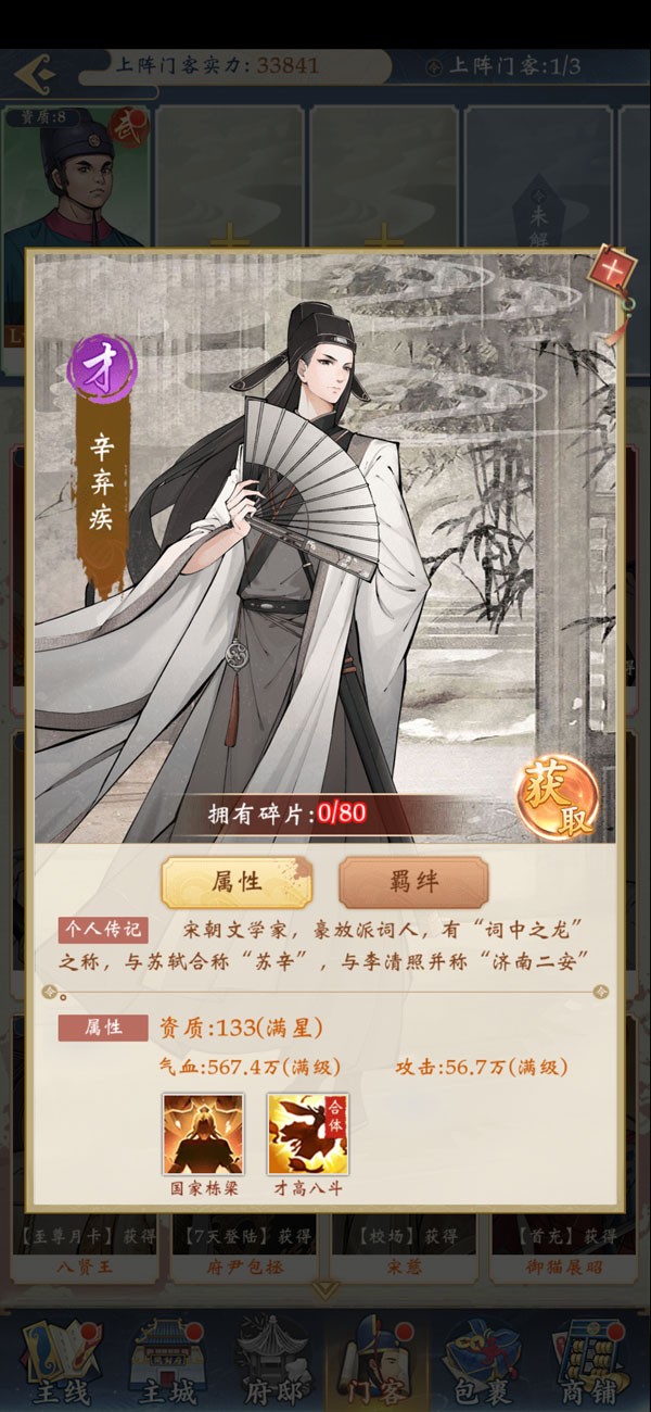 橙色门客如八贤王、辛弃疾、李清照、宋仁宗、白玉堂、欧阳春、赵匡胤、御猫展昭等多需通过付费或特定途径获取,获得后应依据其羁绊与合体关系灵活编队。常规阵容可围绕府尹包拯进行构建,聚贤阁兑换所得的橙色门客之间也普遍存在羁绊效果。