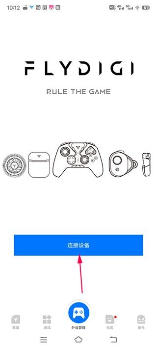 返回飞智游戏厅应用,进入“外设管理”,点击“连接设备”开始配对流程。