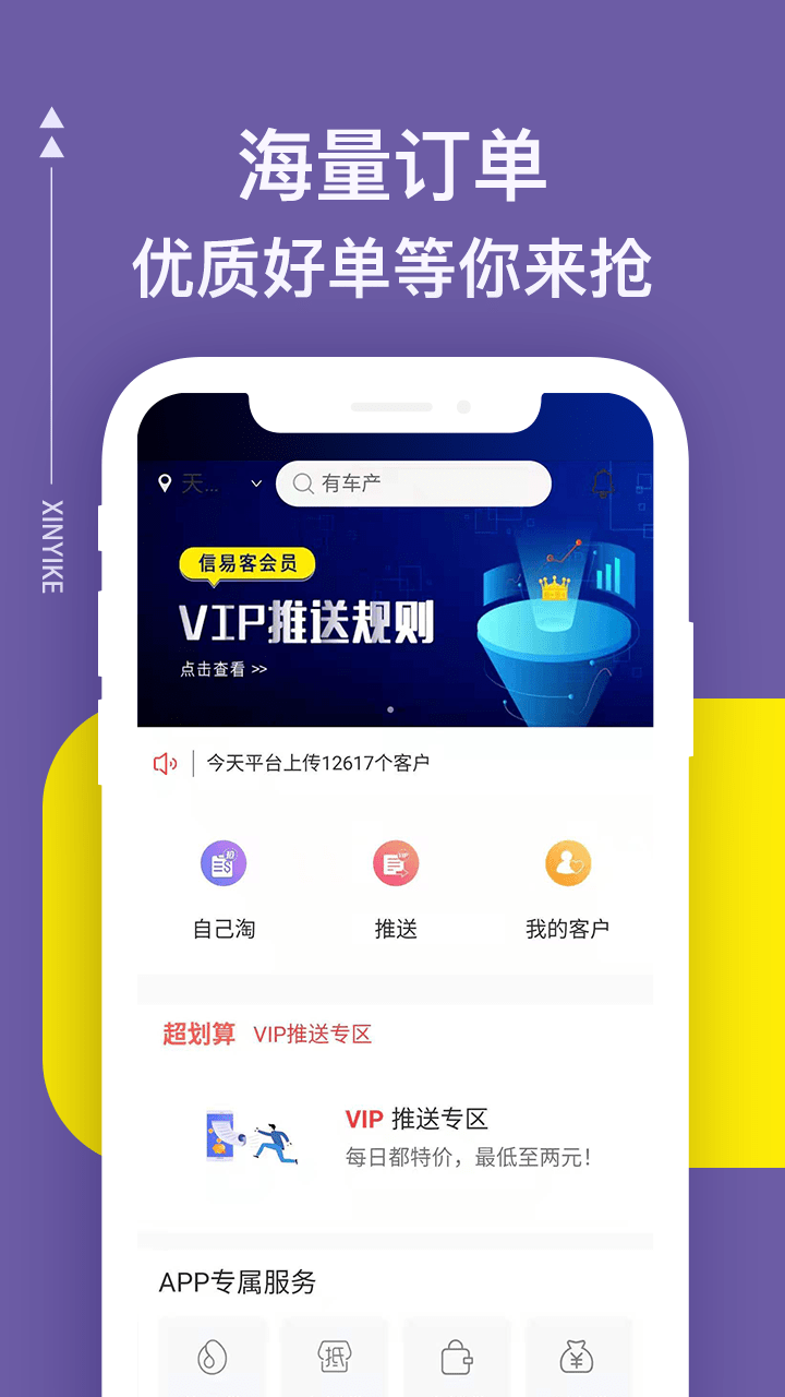 信易客信贷经理抢单是专为信贷经理、信贷员及信贷客打造的一站式获客展业助手。真实医院客户经客服核实,精准匹配资金需求,降低获客成本,提升开单效率。每日更新一手信贷客户资源,助力信贷从业者快速抢单、高效展业,稳夺销冠开单王。