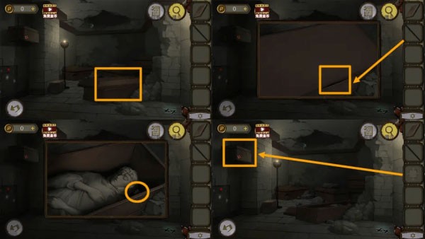 借助【长棍子】撬开棺材盖板,取得内部的【拼图块】。随后将拼图块放入机关完成拼图,解锁后获得另一把【钥匙】。