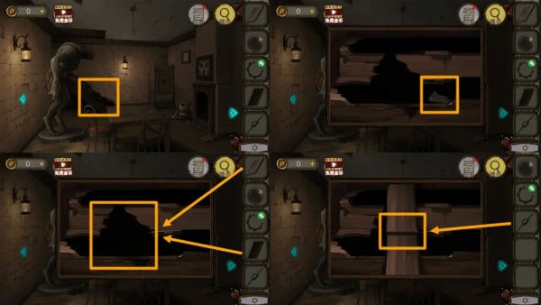 在楼梯下方木板缝隙中找到日记,将两块【木板】铺设在破损楼梯处,再用【细绳】加以固定,完成修复任务即可通关。