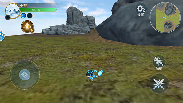 进入战斗场景后,左侧虚拟摇杆控制异兽移动,右侧按钮分别用于加速与发动攻击。