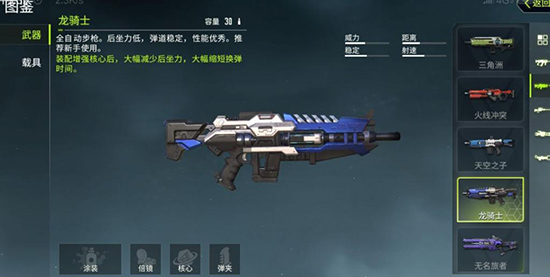 龙骑士具备低后坐力与稳定弹道,非常适合刚接触游戏的新手。装配核心后,换弹速度加快,后坐力进一步减弱,整体操控更为流畅。