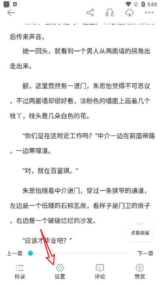 轻点屏幕中央区域,随后在弹出菜单中选择设置选项。