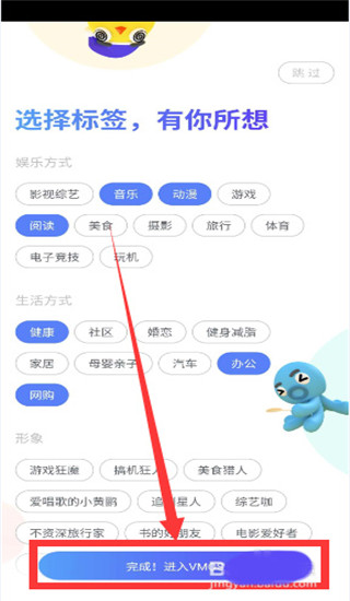 进入个性化设置环节,从娱乐方式、生活方式及形象偏好中选择适合的标签组合。