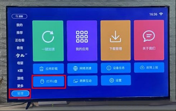 若安装失败,可在欢视助手中的【打开U盘】→【安装包】里找到刚上传的文件手动安装。
