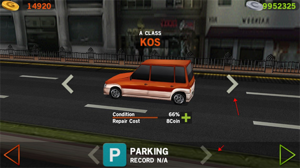 车辆旁的箭头图标用于更换车型,下方选项则可切换不同赛道。