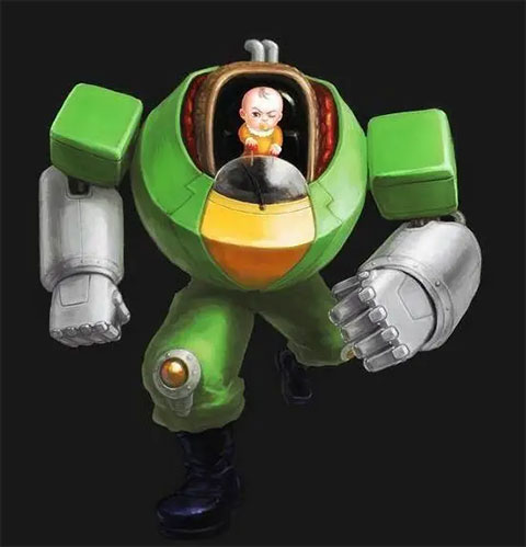 年仅2岁的高智能婴儿,叼着奶嘴,连同驾驶的机械装置总高仅57厘米,重9公斤,A型血蓝眼。本体无攻击能力,全靠座驾输出。因是左撇子,出拳较慢且臂展最短,腿脚亦不占优,仅适合贴身作战。为保障安全,取消后空翻,新增“抓人大坐”等符合孩童特性的招式,整体实力为四人中最弱。