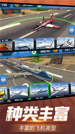 多种机型任你挑选,每种飞机性能各异,搭配广阔无垠的世界地图,带来丰富多变的飞行体验。