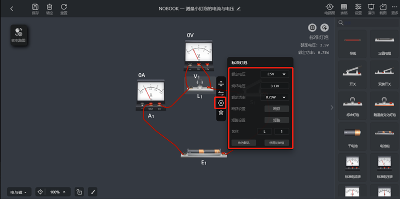 根据实验需求,从右侧器材栏中选取相应设备,自由组装并开展探究。